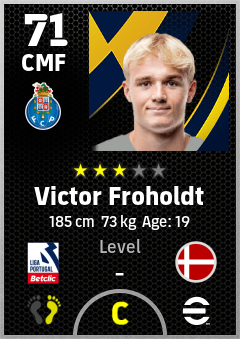 . Victor Froholdt is a Center Midfielder footballer from Denmark who plays for Fc Porto in eFootball 2026.
