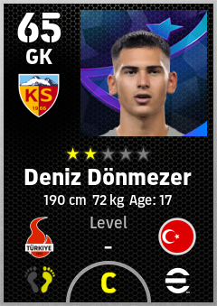 Deniz Dönmezer is a Goalkeeper footballer from Türkiye who plays for Mondihome Kayserispor in eFootball 2026.