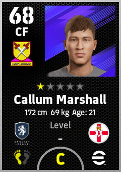 . Callum Marshall is a Center Forward footballer from Northern Ireland who plays for West Ham Rb in eFootball 2026.