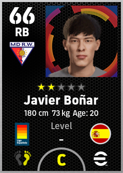 . Javier Boñar is a Right Back footballer from Spain who plays for Madrid Rosas Rb in eFootball 2026.