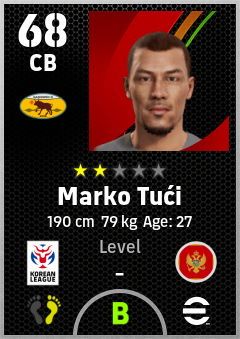 . Marko Tući is a Center Back footballer from Montenegro who plays for Gangwon O in eFootball 2026.