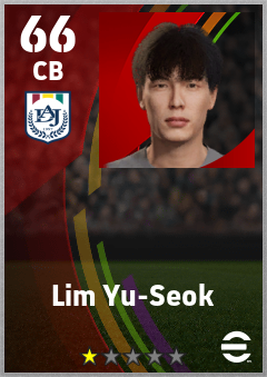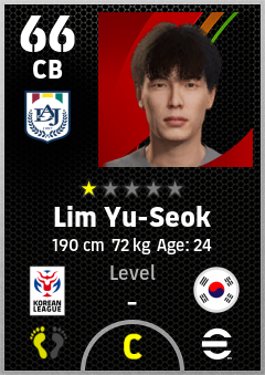 . Lim Yu-Seok is a Center Back footballer from Korea Republic who plays for Daejeon Rgw in eFootball 2026.