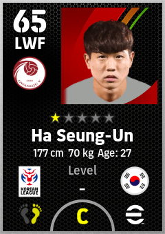 . Ha Seung-Un is a Left Wing Forward footballer from Korea Republic who plays for Gwangju Y in eFootball 2026.
