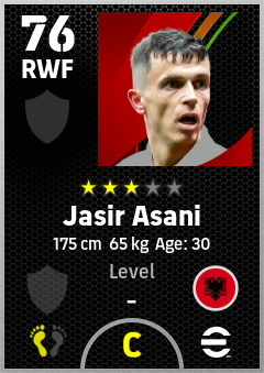 . Jasir Asani is a Right Wing Forward footballer from Albania who plays for Free in eFootball 2026.