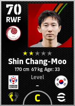 . Shin Chang-Moo is a Right Wing Forward footballer from Korea Republic who plays for Gwangju Y in eFootball 2026.
