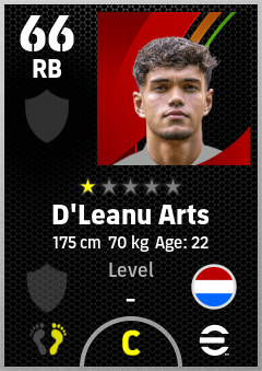 . D'leanu Arts is a Right Back footballer from Netherlands who plays for Free in eFootball 2026.