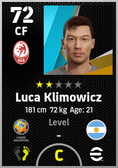 . Luca Klimowicz is a Center Forward footballer from Argentina who plays for Alta Córdoba Rb in eFootball 2026.