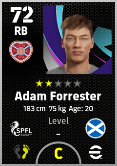 . Adam Forrester is a Right Back footballer from Scotland who plays for Heart Of Midlothian Fc in eFootball 2026.