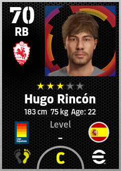 . Hugo Rincón is a Right Back footballer from Spain who plays for Girona R in eFootball 2026.
