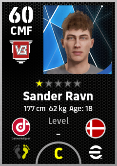 . Sander Ravn is a Center Midfielder footballer from Denmark who plays for Vejle Rh in eFootball 2026.