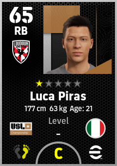 . Luca Piras is a Right Back footballer from Italy who plays for Loudoun United Fc in eFootball 2026.