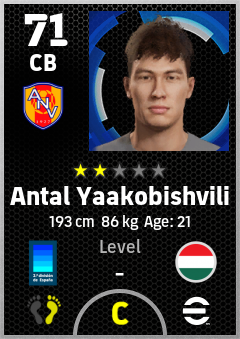 . Antal Yaakobishvili is a Center Back footballer from Hungary who plays for Andorra La Vella Aar in eFootball 2026.