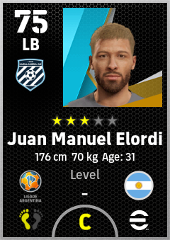 . Juan Manuel Elordi is a Left Back footballer from Argentina who plays for Avellaneda Ab in eFootball 2026.