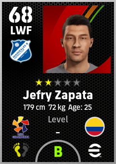 . Jefry Zapata is a Left Wing Forward footballer from Colombia who plays for Manizales B in eFootball 2026.