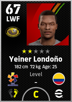 . Yeiner Londoño is a Left Wing Forward footballer from Colombia who plays for Valledupar Abr in eFootball 2026.