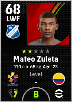 . Mateo Zuleta is a Left Wing Forward footballer from Colombia who plays for Manizales B in eFootball 2026.