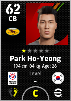 . Park Ho-Yeong is a Center Back footballer from Korea Republic who plays for Gangwon O in eFootball 2026.