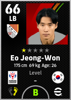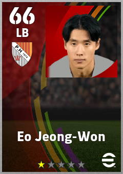. Eo Jeong-Won is a Left Back footballer from Korea Republic who plays for Pohang Rb in eFootball 2026.