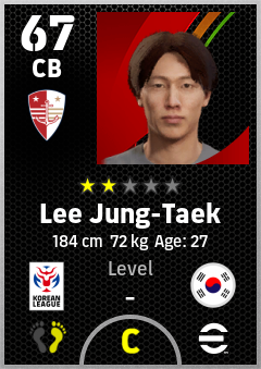 . Lee Jung-Taek is a Center Back footballer from Korea Republic who plays for Gimcheon Rw in eFootball 2026.