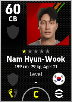 . Nam Hyun-Wook is a Center Back footballer from Korea Republic who plays for Free in eFootball 2026.