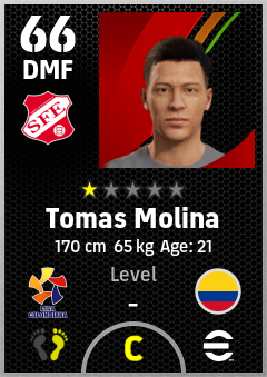 . Tomas Molina is a Defensive Midfielder footballer from Colombia who plays for Santa Fe De Bogotá R in eFootball 2026.