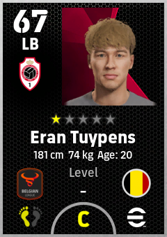 . Eran Tuypens is a Left Back footballer from Belgium who plays for Antwerp Rw in eFootball 2026.