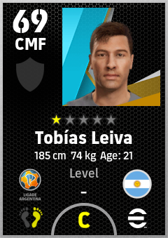 . Tobías Leiva is a Center Midfielder footballer from Argentina who plays for Río Cuarto Ab in eFootball 2026.