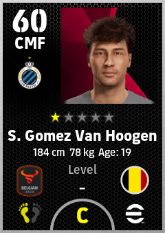 . S. Gomez Van Hoogen is a Center Midfielder footballer from Belgium who plays for Brugge Bz in eFootball 2026.