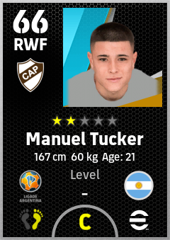 . Manuel Tucker is a Right Wing Forward footballer from Argentina who plays for Vicente López M in eFootball 2026.