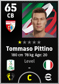 . Tommaso Pittino is a Center Back footballer from Italy who plays for Mantova Br in eFootball 2026.