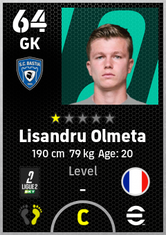 . Lisandru Olmeta is a Goalkeeper footballer from France who plays for Sc Bastia in eFootball 2026.
