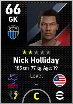 . Nick Holliday is a Goalkeeper footballer from United States who plays for Charlotte Bbgw in eFootball 2026.