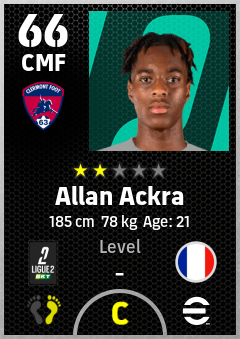 . Allan Ackra is a Center Midfielder footballer from France who plays for Clermont Foot 63 in eFootball 2026.