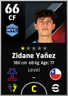 . Zidane Yañez is a Center Forward footballer from Chile who plays for New York City B in eFootball 2026.