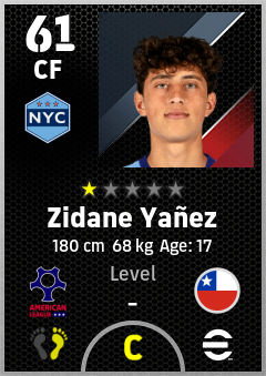 . Zidane Yañez is a Center Forward footballer from Chile who plays for New York City B in eFootball 2026.