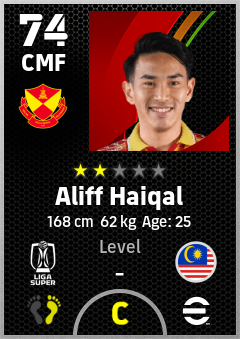 . Aliff Haiqal is a Center Midfielder footballer from Malaysia who plays for Selangor Fc in eFootball 2026.