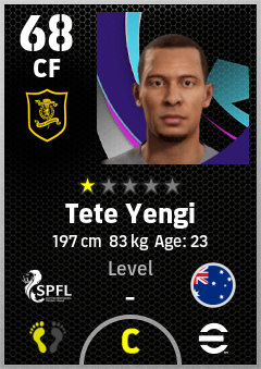 . Tete Yengi is a Center Forward footballer from Australia who plays for Livingston Fc in eFootball 2026.