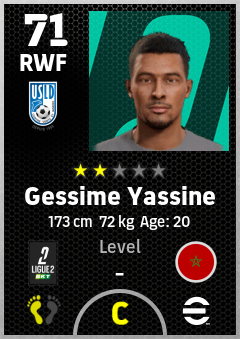 . Gessime Yassine is a Right Wing Forward footballer from Morocco who plays for Usl Dunkerque in eFootball 2026.