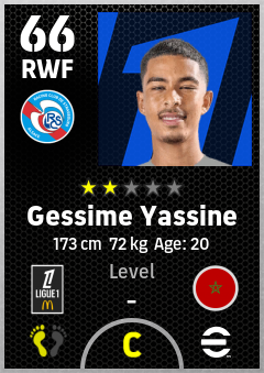 . Gessime Yassine is a Right Wing Forward footballer from Morocco who plays for Rc Strasbourg Alsace in eFootball 2026.