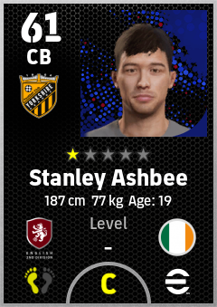 . Stanley Ashbee is a Center Back footballer from Republic Of Ireland who plays for Hull Ob in eFootball 2026.