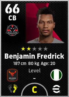 . Benjamin Fredrick is a Center Back footballer from Nigeria who plays for Denderleeuw Bzr in eFootball 2026.