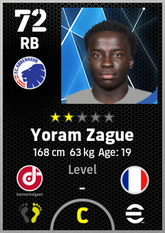 . Yoram Zague is a Right Back footballer from France who plays for København Hb in eFootball 2026.