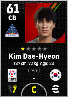 . Kim Dae-Hyeon is a Center Back footballer from Korea Republic who plays for Suwon Rb in eFootball 2026.