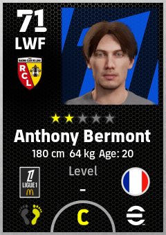 . Anthony Bermont is a Left Wing Forward footballer from France who plays for Rc Lens in eFootball 2026.