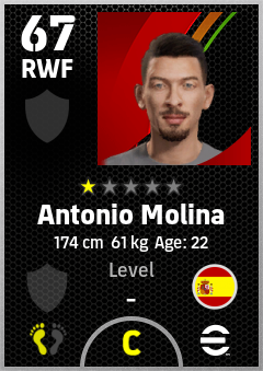 . Antonio Molina is a Right Wing Forward footballer from Spain who plays for Free in eFootball 2026.