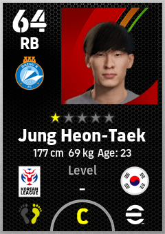 . Jung Heon-Taek is a Right Back footballer from Korea Republic who plays for Daegu B in eFootball 2026.