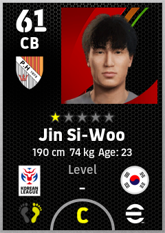 . Jin Si-Woo is a Center Back footballer from Korea Republic who plays for Pohang Rb in eFootball 2026.