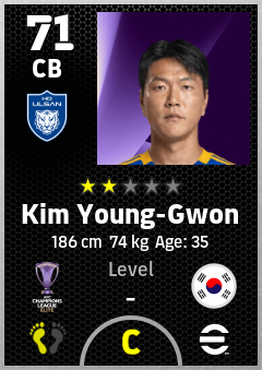 . Kim Young-Gwon is a Center Back footballer from Korea Republic who plays for Ulsan Hd Fc in eFootball 2026.