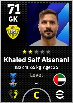 . Khaled Saif Alsenani is a Goalkeeper footballer from United Arab Emirates who plays for Al Wasl Fc in eFootball 2026.