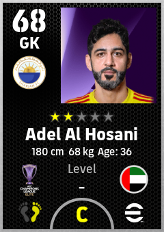 . Adel Al Hosani is a Goalkeeper footballer from United Arab Emirates who plays for Sharjah Fc in eFootball 2026.